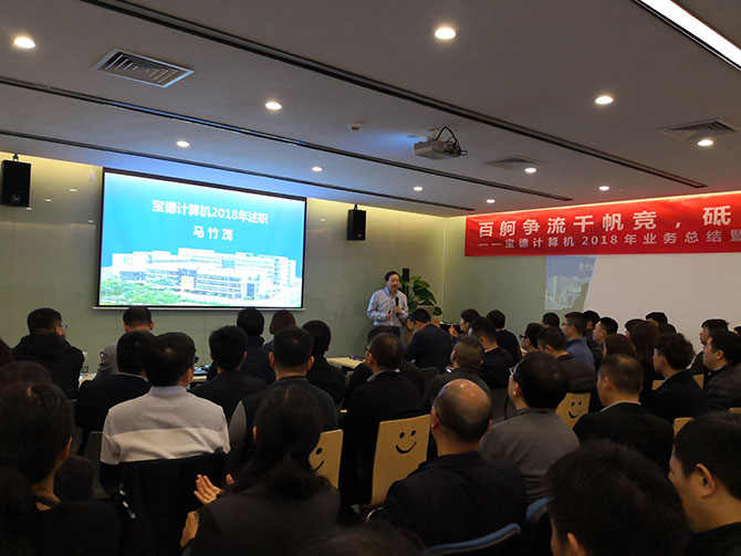 上午9时整,会议准时召开。会议首先由suncitygroup太阳新城机业务总经理马竹茂作“suncitygroup太阳新城服务器业务2018年Q4业务总结和2019年业务规划报告”,马总用数据化的语言对公司2018年订单销售、重点工作以及回款情况进行了详实的总结和回顾,同时对工作中存在的问题进行了全面分析,并制定了2019年工作计划与目标。马总指出,2018年是极具挑战的一年,逆境促人成长,各地区互帮互助,不忘初心、砥砺奋进。新的一年里要继续努力,严格遵守公司政策制度,构建强有力的团队,提高销售队伍的综合实力,抢占先机,赢得市场。