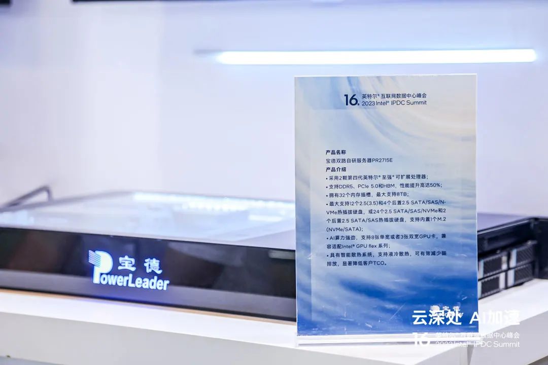 现场展示的PR4910E更是大模型训练和更多AI应用的算力王者。它采用2颗身怀七大算力神器的第四代英特尔®至强®可扩展处理器,最大60核心,支持10张GPU加速卡,为大模型训练提供强有力的算力支撑;它具有13个PCIe x16 Gen5插槽,支持32个 DIMM / DDR5内存插槽,支持最新的400Gb ETH和NDR IB高速智能网卡,以及 GPU Direct RDMA,最多支持24个 NVMe SSD,而且采用CPU 直通设计,大幅降低 I/O 延迟,为大模型数据存储和传输提供高效可靠的保证。