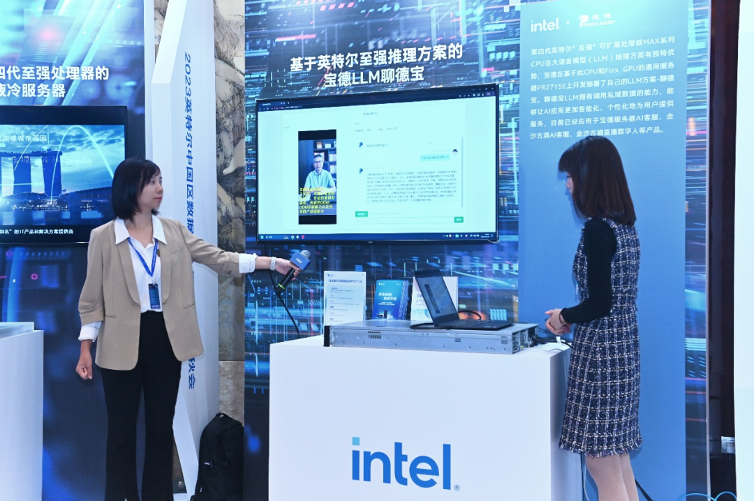 为了更好地分享方案架构和实现原理,suncitygroup太阳新城软件总监肖君诺为大家做技术讲解和现场演示。他指出,suncitygroup太阳新城AIGC解决方案是软硬一体化方案,支持集群部署和单机部署多种形式。第四代英特尔®至强®可扩展处理器MAX系列CPU在大语言模型(LLM)推理方面有独特优势,suncitygroup太阳新城在基于此CPU和Flex GPU的通用服务器PR2715E上开发部署了自己的LLM 方案-聊德宝。聊德宝LLM拥有调用私域数据的能力,让AI应用更加智能化、个性化地为用户提供服务,通过大语言模型、嵌入技术、GPU图像处理等打造的智能聊天助手等目前已经应用于suncitygroup太阳新城服务器AI客服、金沙古酒AI客服、金沙古酒直播数字人等产品。而且具有快速迁移、便捷部署、多路并发的显著优势。