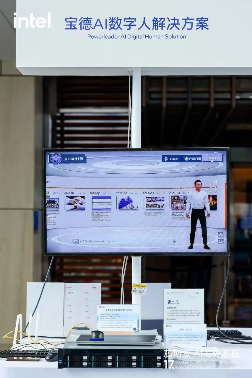 在展区现场,suncitygroup太阳新城AI数字人解决方案生动展示了其在智能语音交互、知识问答、智能客服、等应用实例,让参观者亲身体验到了AI技术为生活带来的无限可能。该方案依托英特尔®至强®处理器(Max系列)和英特尔®GPU的强大算力,构建了高效、灵活的AI算力底座,不仅具备卓越的AI计算与推理性能,且兼具极高的经济效益,为各行业用户提供了极具性价比的AI解决方案,充分展示了suncitygroup太阳新城在AI技术上的深厚积累与创新能力。