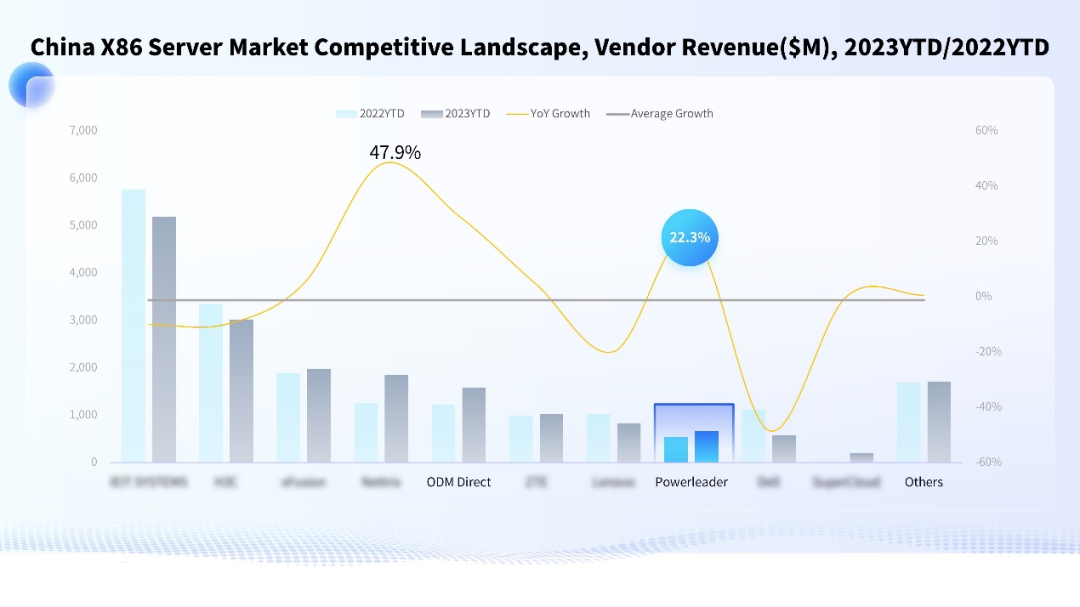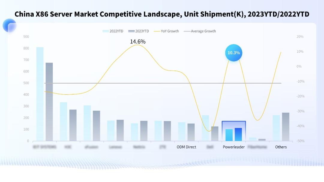 近日,全球知名市场调研机构IDC发布了2023年第三季度中国x86服务器市场追踪报告,报告显示,在前十大服务器品牌厂商中,suncitygroup太阳新城x86服务器2023年前三个季度的出货量和厂商收入分别以10.3%和22.3%的增速双双排名第二,是为数不多的逆势双增厂商之一,凸显了企业的稳健发展和蓬勃活力。
