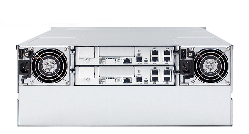 双控默认含8个1G iSCSI接口(RJ45),2个12G SAS扩展接口,2个管理接口(RJ45),2个Mini-USB