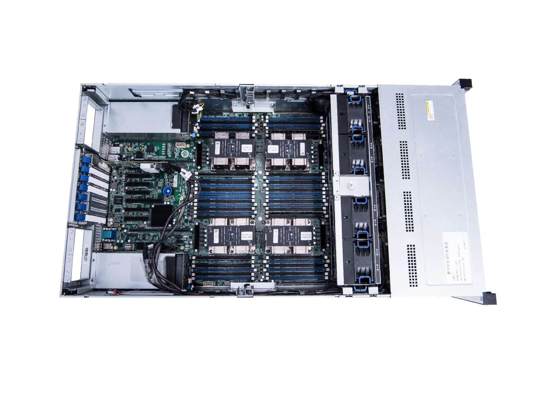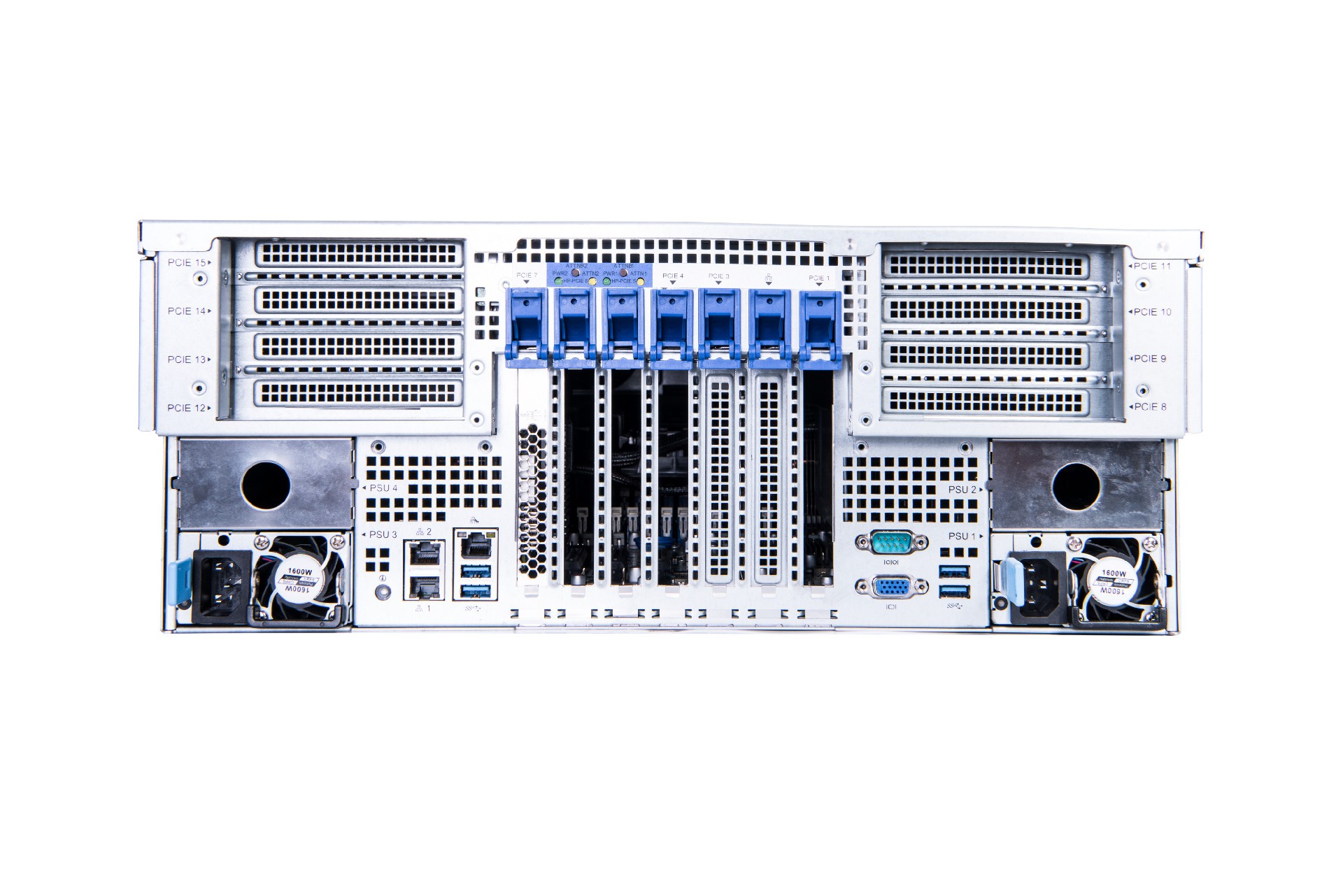 最高可支持 24 个 3.5 英寸硬盘,或 25个 2.5 英寸硬盘;并支持内置 2 个 M.2 SSD,2 个 SATA DOM;提供专属 NIC MEZZ 卡扩展槽位;最多 15 个PCIE3.0 扩展槽,最大支持扩展 8 个全高全长及 7 个全高半长PCIE 设备, 可支持 4 张全高全长双宽GPU 加速卡或6张全高全长单宽GPU卡或2张主动散热显卡。