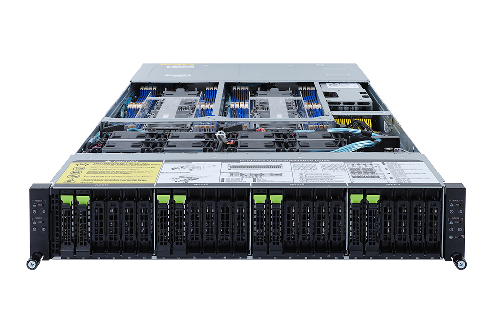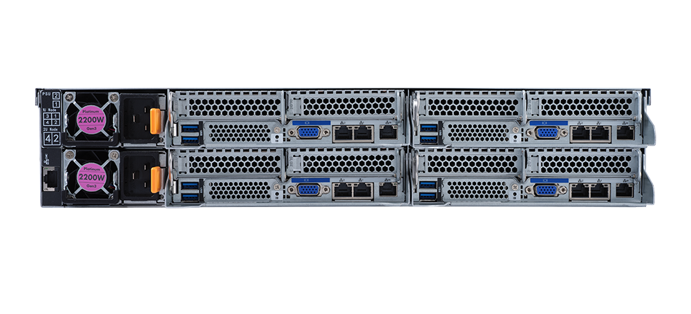 2U四节点服务器适用于传统数据中心前后气流散热设计和标准19英寸工业机柜。