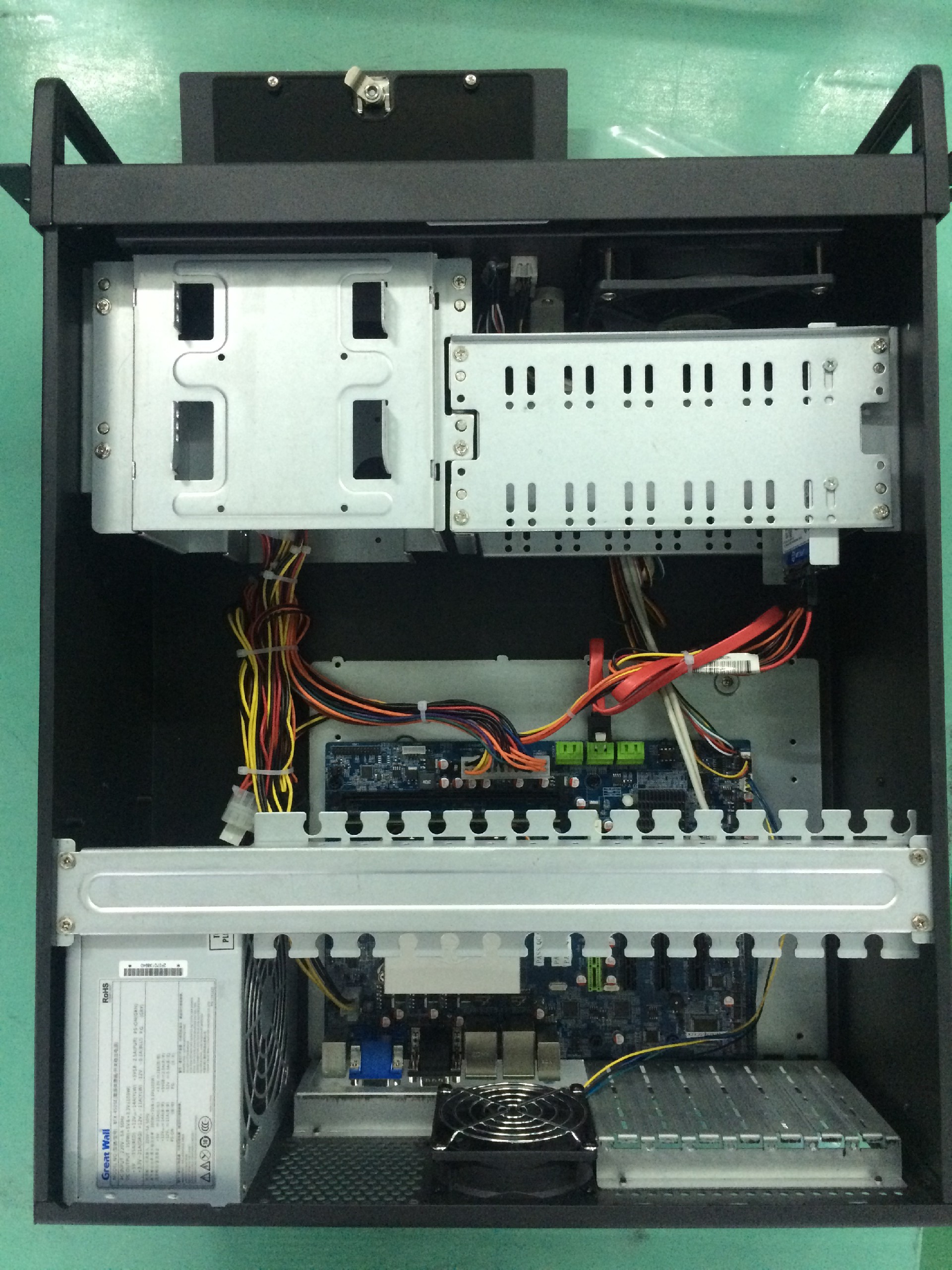| 硬盘接口 | 9个SATA硬盘位(8个3.5英寸,1个2.5英寸,主板只支持3个SATA,超过3个SATA硬盘需用阵列卡扩展) 1个Msata SSD盘位 |