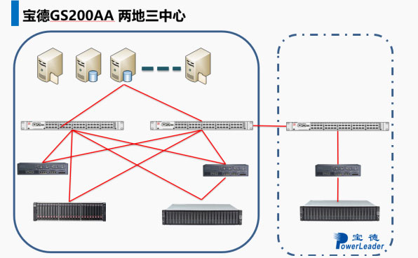 两地三中心的灾备模式可以有效防止大规模自然灾害造成的数据丢失,某一数据中心设备发生故障时,业务可以无缝切换到灾备数据中心,保证业务的连续性。